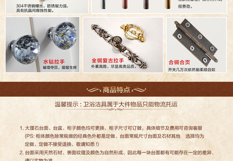 我司實木浴室柜采用進口的泰國橡膠木(行業(yè)統(tǒng)稱為泰國橡木)和美國紅橡,請親知悉!