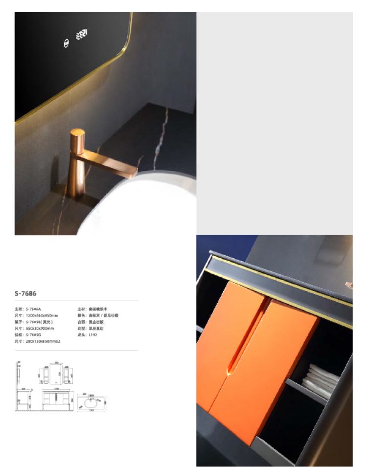現(xiàn)代簡約浴室柜S-7686 1200mmx560mmx850mm