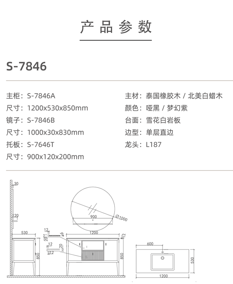 現(xiàn)代中式浴室柜S-7846【1200x530x850mm】