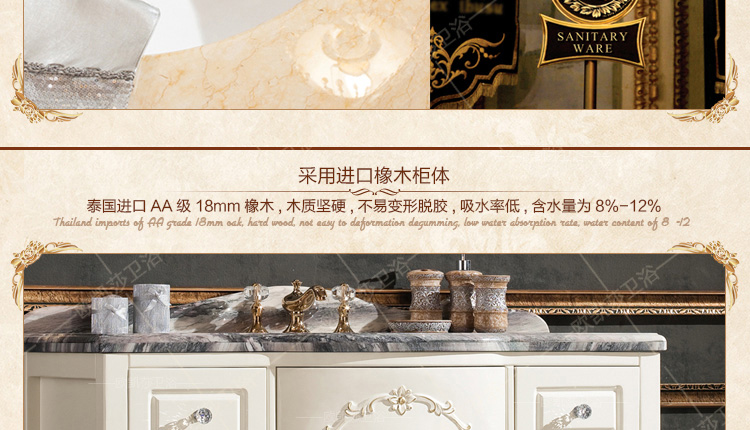 我司實木浴室柜采用進口的泰國橡膠木(行業(yè)統(tǒng)稱為泰國橡木)、美國紅橡、白蠟?zāi)、烏金木,具體參詳產(chǎn)品材質(zhì)介紹,請親知悉!歡迎您點擊下方立即采購按鈕聯(lián)系我們,了解詳情!