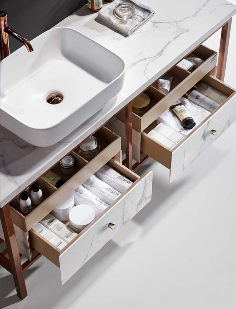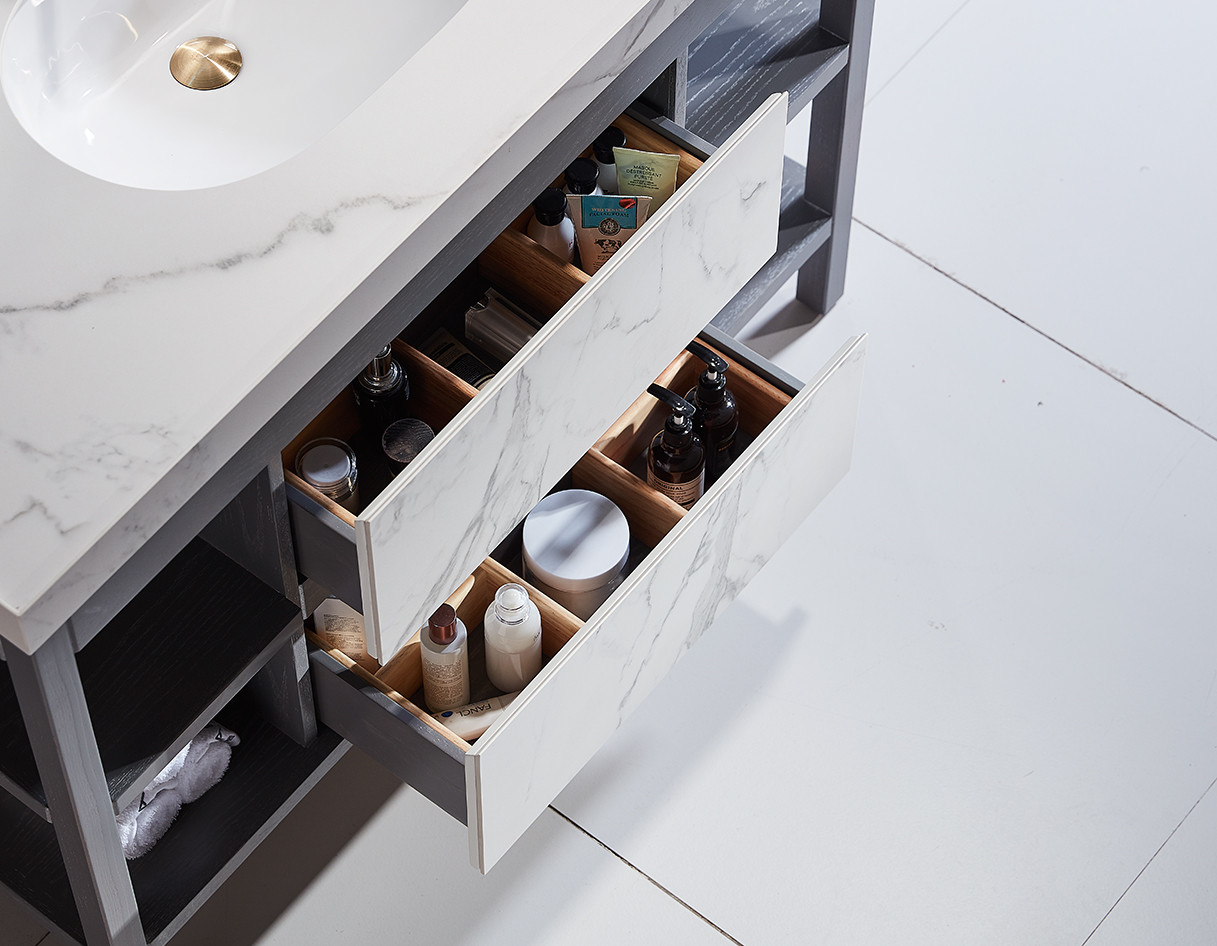 遠(yuǎn)觀是極簡(jiǎn)的浴室柜,打開是大容量的收納空間,