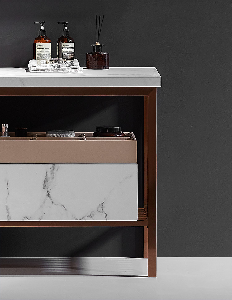 匠心鑄造,細(xì)節(jié)體現(xiàn)品質(zhì),白色大理石臺(tái)面配陶瓷臺(tái)下盆,
