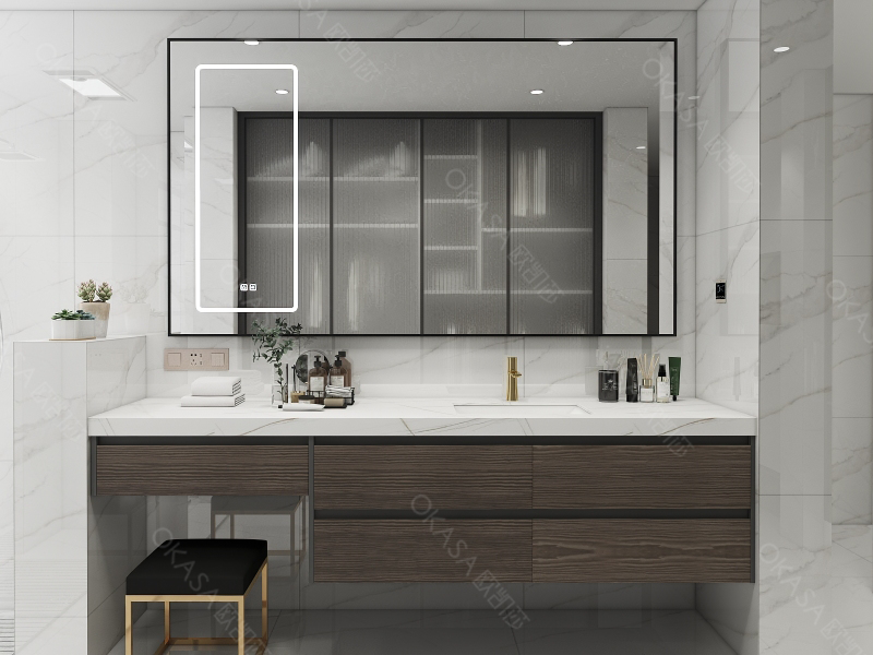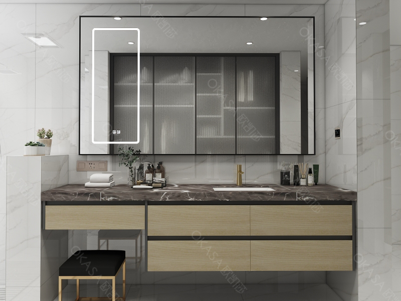 無(wú)論是多功能鏡柜,還是紋理靈動(dòng)的臺(tái)面