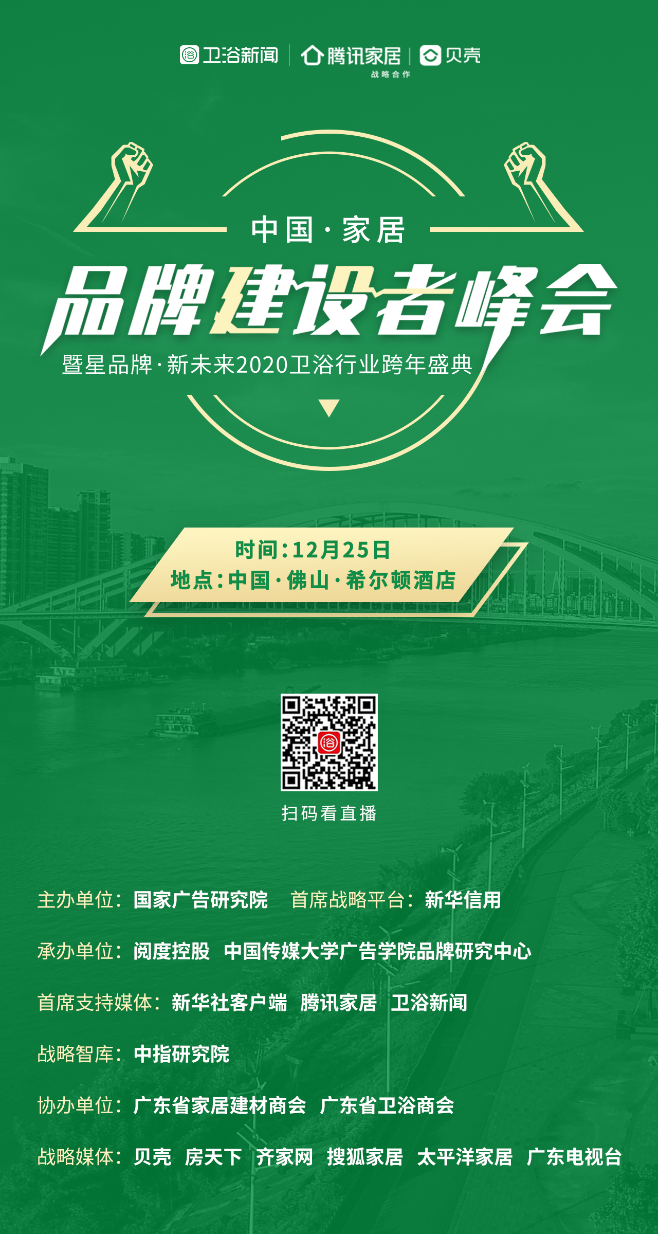 中國家居品牌建設者峰會暨“星品牌·新未來”2020 衛(wèi)浴行業(yè)跨年盛典,是由中國建材市場協(xié)會指導,國家廣告研究院主辦,新華社客戶端、中國傳媒大學、騰訊家居、衛(wèi)浴新聞等權威機構聯(lián)合舉辦的中國衛(wèi)浴行業(yè)最大規(guī)模峰會。